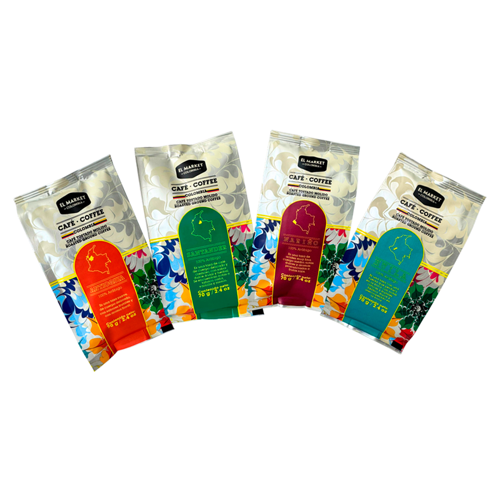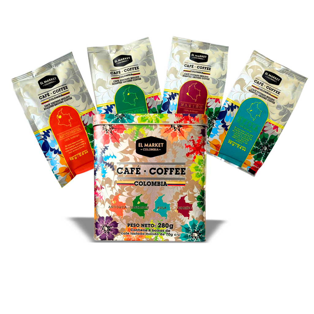 Este kit es realmente un "Regalo Perfecto". Un solo kit, 4 sabores de café de origen de las regiones de Antioquia, Santander, Huila y Nariño... ¡Sin duda una experiencia única para los que saben de café!